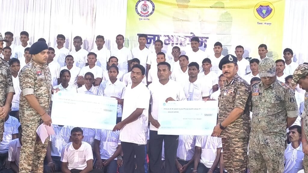 बीजापुर। नक्सलवाद के खात्मे को लेकर आज बीजापुर से ऐतिहासिक खबर सामने आई है, एक साथ 103 नक्सलियों ने संगठन का साथ छोड़कर मुख्य धारा में लौटने का निर्णय लिया है, बीजापुर एसपी जितेंद्र यादव के सामने 103 नक्सलियों ने आत्म समर्पण कर दिया है। आत्म समर्पण करने वाले नक्सलियों पर कुल एक करोड़ 6 लाख का ईनामी घोषित था। समर्पण करने वाले नक्सलियों में 80 पुरुष और 23 महिला नक्सली शामिल है। नक्सल इतिहास में अब तक सबसे बड़ा सरेंडर है। जंगलों में फोर्स के बढ़ते दबाव और सरकार की नक्सलवाद को लेकर नई नीति से स्थानीय युवा जो भटक कर नक्सलियों के झांसे में आ गए थे वो अब घर वापसी कर रहे है, दो दिन बाद केंद्रीय गृहमंत्री अमित शाह बस्तर आ रहे है, उनके आगमन के पहले ही बस्तर से सुकून भरी खबर सामने आई है। आत्म समर्पण करने वाले नक्सलियों में डीवीसीएम, पीपीसीएम, एसीएम,प्लाटून पार्टी सदस्य,मिलिशिया सदस्य, जनताना सरकार अध्यक्ष/ सदस्य, सीएनएम/ DAKMS जैसे विभिन्न पदों पर सक्रिय नक्सली शामिल है, आत्म समर्पण करने वाले नक्सलियों के अनुसार नक्सल संगठन में अब मतभेद चरम पर है, वही शीर्ष नेताओं के मारे जाने से संगठन बुरी तरह कमजोर हो चुका है। वहीं दूसरी तरफ शासन की विकास मुखी योजना से अब उन्हें  जीवन सुरक्षित तरीके से परिवार के साथ जीने का अवसर मिल रहा है, इसलिए वो हिंसा का रास्ता छोड़कर समाज की मुख्यधारा में लौट आए है।